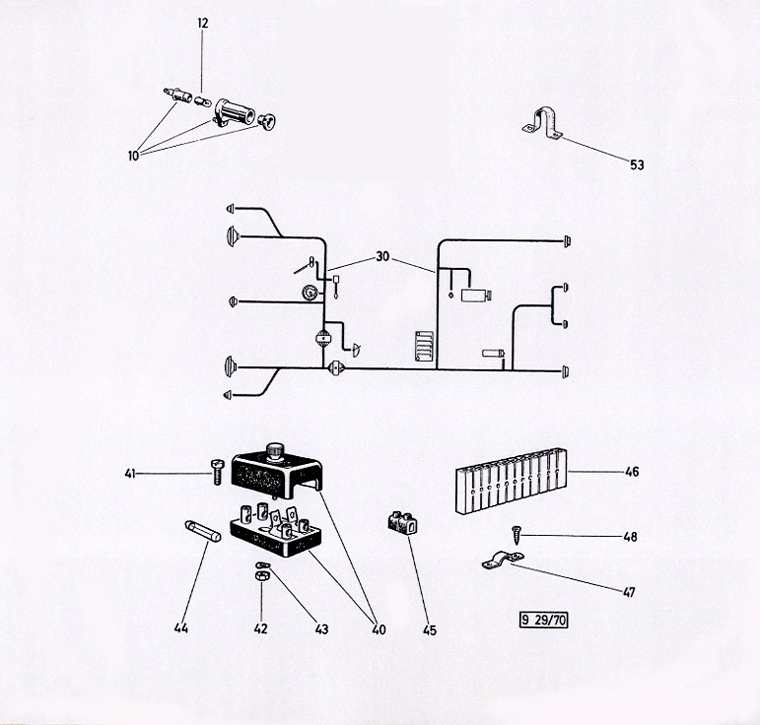 - 9.29 Schalter, Kontrollleuchten, Kabelstrang für Ausführung mit Polyesterfahrerhaus